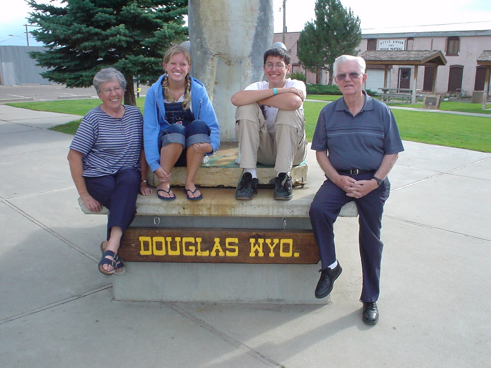 Here is a nice group shot of grandkids and grandparents at the base of the Jackalope monument. |