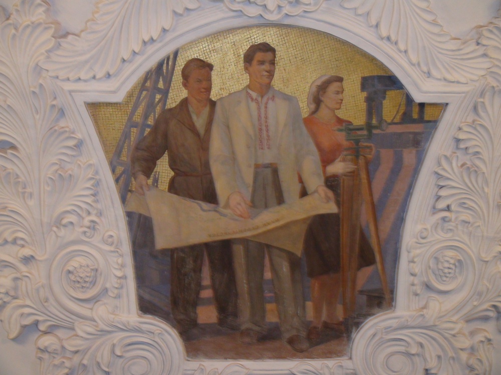 Here is a tile mosaic. The guide says the people look like models, nothing like real-life russians. She says this is to promote the ideal, rather than reflect real life. |