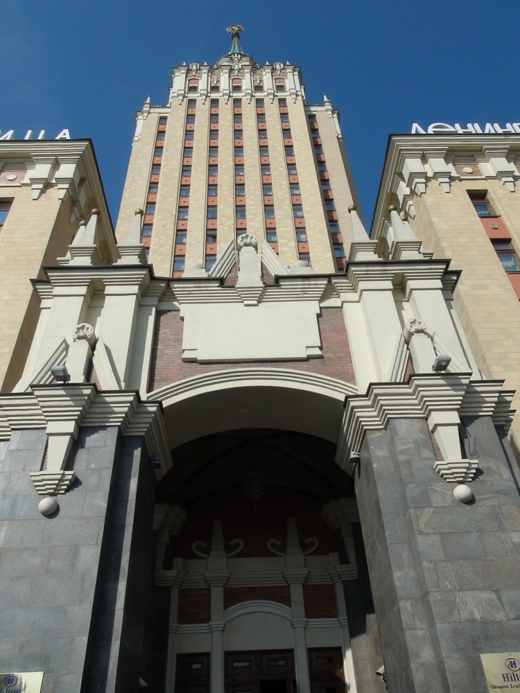 Our hotel for the next three nights is the Lenningrad Hilton (in Moscow). It is housed in a "Stalin Skyscraper," a common design for large buildings that Stalin sponsored. They completely renovated the inside for this recently opened Hilton, which includes a 110 electrical outlet! |