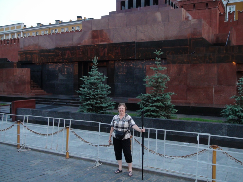 Linda stands by Lenin's tomb. Our guide says they have decided to remove his preserved corpse from this tomb and bury it in his home city (which was his wish, according to his will). Other leaders, who are buried in the wall behind this tomb, will also be relocated to their home cities. It's just a matter of funding at this point, so the move is delayed until the economy picks up. |