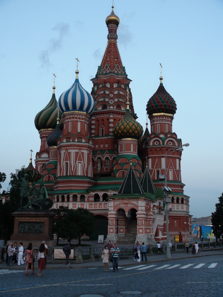 At the other end of Red Square is the Intercession Cathedral, St. Basil's. With the revolution, most churches were closed (and priests killed or exiled). Our guide says there has been a renewal of active faith since the break-up of the Soviet Union, with many church properties returned. But as we look across the landscape, it appears that the majority of churches are still vacant and unrestored, probably due to cost. |