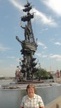 Linda stands by a very large statue of Peter the Great on a ship. The artist who designed this was also recently awarded the contract for creating a memorial at the 911 site in New York. |