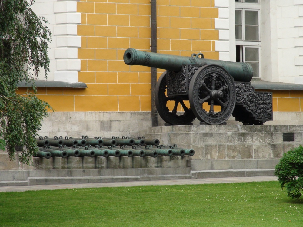 Inside the Kremlin. At first, I was interested in this canon. Then I noticed all the smaller canons near the ground. These were among several hundred canons the russians retrieved from Napoleon, as he withdrew in defeat from Russia in the early 1800s. |
