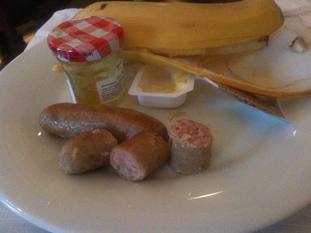 Normally, our breakfasts are normally great; but this morning, they served a sausage that, as Bill described, "tasted like we were eating someone's stinky feet." |