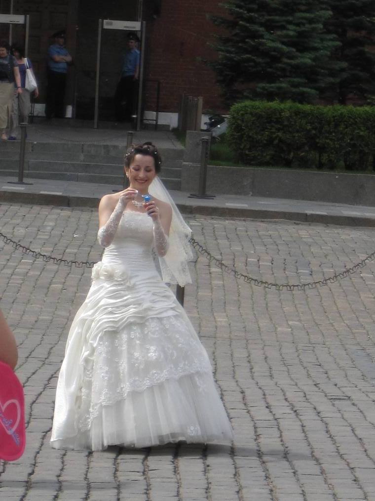 This is a bride celebrating her wedding at Red Square. She is blowing bubbles. Click here to see her in action. |
