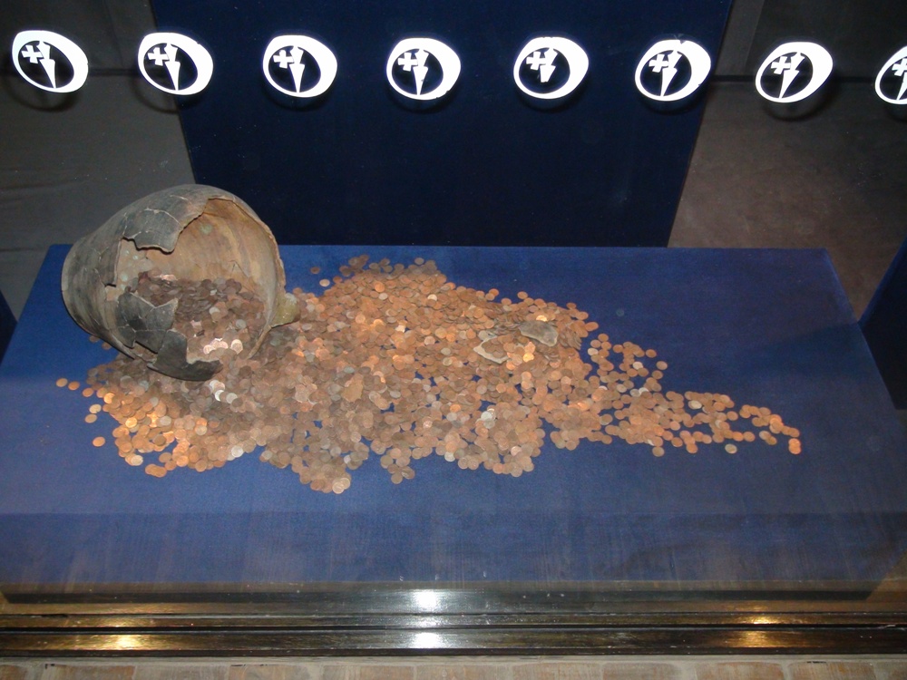 Many hidden pots of money were found in the walls of the castle, once sonar equipment was used (banks were a little less reliable in those days). We were really impressed until they told us that, in the day, this much money would onlypurchase two cows! |
