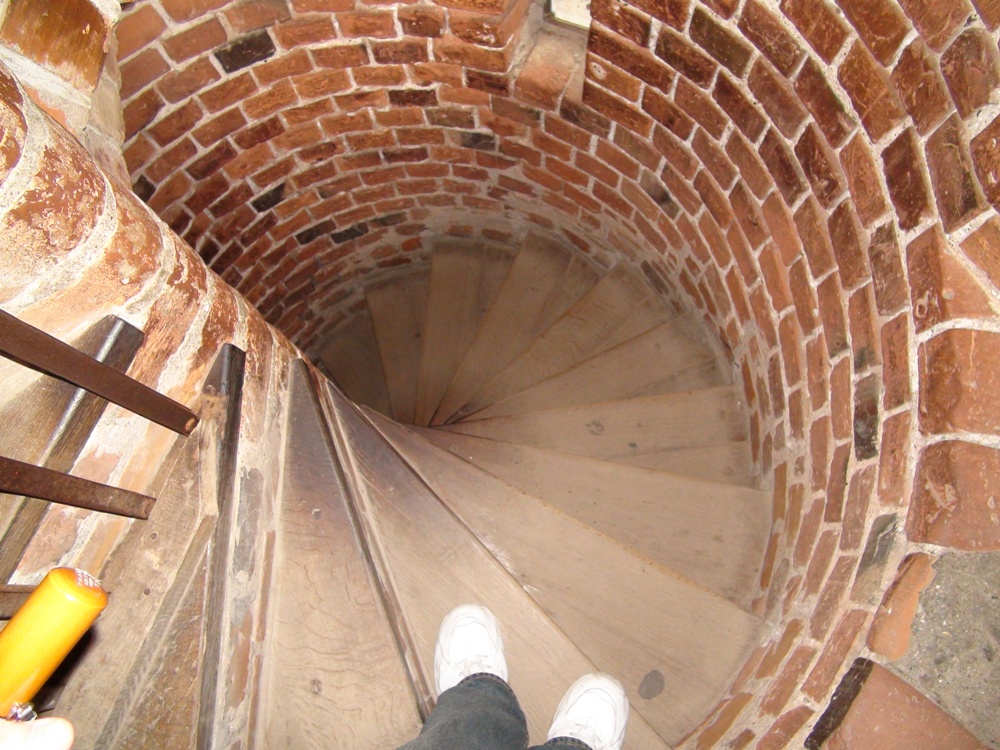 This is one of the circular staircases (tennis shoes to demonstate use). |