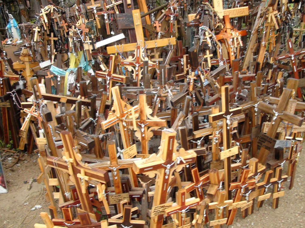 Along the way to Riga, we stopped at the Hill of Crosses. This is a far away picture, but the next ones will give you an idea of the density of crosses placed on this hill. Under the USSR, the crosses were constantly taken down, suppressing religious expression, but the people kept putting new ones up. |