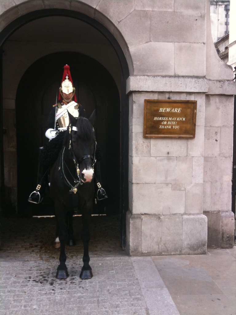 I felt a little sorry for these soldiers, who stand (or sit on horses) at strict attention, having to ignore the visitors who pose next to them giggling or pet the horses for pictures. |