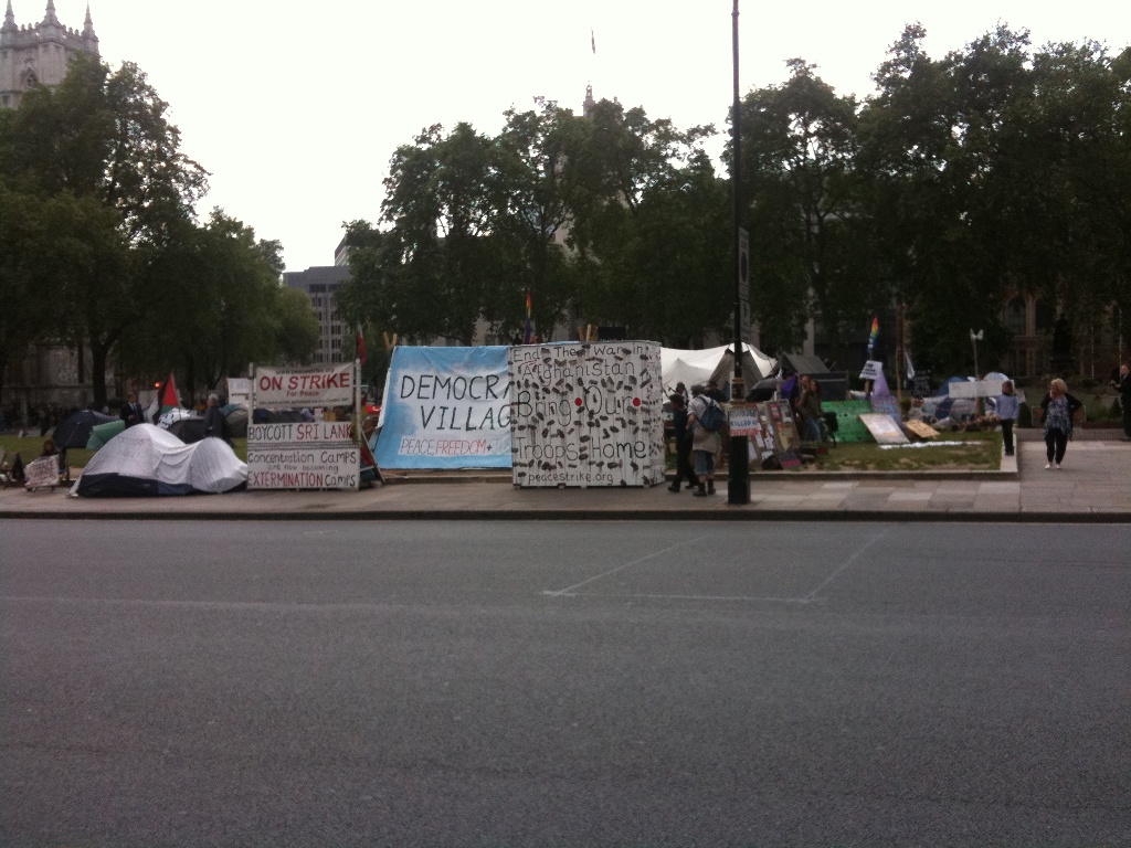 A bunch of government protesters are camped out with signs related to their cause (mostly antiwar). One person was constantly walking around a yelling. I'm surprise his voice holds out if he does that regularly. |