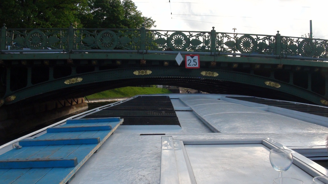 That leaves about 1 foot of clearance between our heads and the bridge bottom, when sitting down! If we stood up, this would be a very short vacation. |