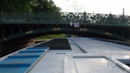 We're sitting on the upper deck chairs, looking out over the cabin top. You can see one of many bridges that this shallow boat passes. The water is high this season, so the boat only clears the bridge bottom by about 2 feet. |