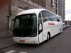 Linda and I are sitting in the first seat behind the driver of the bus (as you can see from this over-the-shoulder picture). What you cannot see (and count yourself fortunate) is the harrowing passing on this highway. That white line down the middle of the road is where the bus goes when it passes a slower truck or car. The slower vehicle moves a little to the right, while (we hope) the oncoming traffic does similar to our left, leaving room down the middle for our pass. |