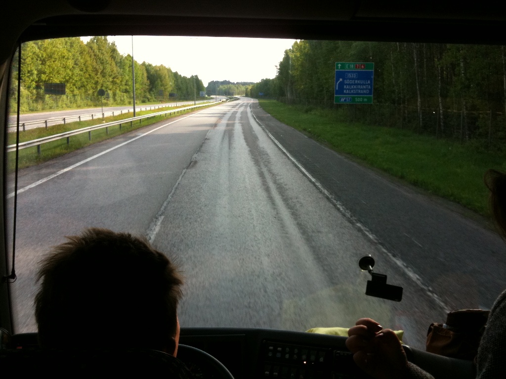 We stopped at a little place near the Finland-Russia border for refreshment and rest. This is the remnant of what the rest stop used to look like, before they built the new place. It looks like they don't take the time to fully tear down the previous stuff when they replace it, and we have seen such remnants at a number of stops. FYI, the border process is rather inefficient (three russian checkpoints), but they tell us it has improved greatly in recent years. |