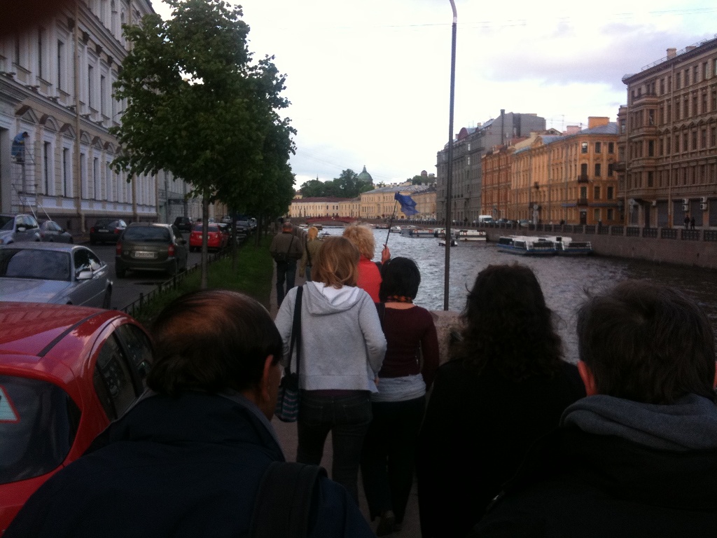 This evening we went on a boat ride through the St. Petersburg canals. This is a shot of the group walking to the boat. |